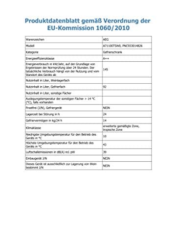 Der Gefrierschrank ARCTIS A71100TSW0 von AEG ist freistehend und kann somit überall eingesetzt werden, wo Sie diesen brauchen. Doch bevor Sie sich für das Gerät entscheiden, sollten Sie einen Blick auf den Energieverbrauch werfen. Der AEG ARCTIS A71100TSW0 ist in der Klasse A++ eingeteilt und verbraucht rund 21 Prozent weniger Strom, als die Klasse A+. Somit kommen Sie im Jahr auf etwa 132 kWh. Dieser Wert hängt natürlich davon ab, wie Sie das Gerät verwenden. Auch der Umwelt tut der Gefrierschrank einen Gefallen, denn dieser ist in die Klimaklassen SN-N-ST-T eingeordnet. Diese liegt also zwischen subnormal und Tropen. Nicht unbeachtet zu lassen ist die Geräuschemission. Mit durchschnittlich 39 dB ist der AEG ARCTIS A71100TSW0 deutlich leiser als manche Konkurrenten. Diese liegen meist bei 41 bis 45 dB. Sobald Sie aber verschiedene Funktionen hinzuschalten, wie Frostmatic, kann der Geräuschpegel ansteigen. Das ist natürlich gerade in einer Küche oder ähnlichem unangenehm.