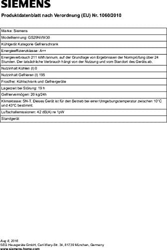 Siemens ist eine große Marke, welche unterschiedliche Angebote bietet. Auch ein Gefrierschrank ist nicht weit, wie das Modell Siemens iQ300 GS29NVW30 zeigt. Dieses hat eine große Ähnlichkeit mit dem iQ300 GS33NVW30, wobei beide Geräte eine gute Ergänzung für den Alltag darstellen. In erster Linie sind diese auf große Haushalte ausgelegt, welche viel Platz benötigen. Deswegen bieten beide Modelle die beliebten BigBoxen. Durch diese haben Sie mehr als genügend Stauraum, können diesen aber auch variabel erweitern. Nicht zu vergessen ist der günstige Energieverbrauch sowie die verschiedenen Zusatzfunktionen. Der einzige Nachteil der Gefrierschränke ist, dass sich diese beim Öffnen oftmals etwas schwer tun.